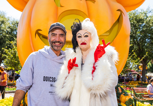 Alejandro Fernández y su familia comparten un momento divertido con Cruella de Vil durante la temporada de Halloween Time en el Disneyland Park en Anaheim, California, donde celebraron el cumpleaños de su novia, Karla Laveaga.